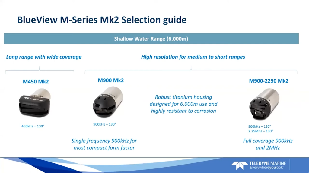 BlueView M是一系列集成性高、低功耗的高分辨率的二维成像多波束声呐,具有广阔的视野和超强的数据传输能力,可为水下识别、导航、监视和检查提供实时高质量的声呐图像。可集成到ROV、AUV、船等操作平台上,也可由潜水员手持下水作业,常用于ROV的跟踪导航、水下避障、船体检查、水下工程的检测和施工、潜水员监测、水下设备的搜索与回收。